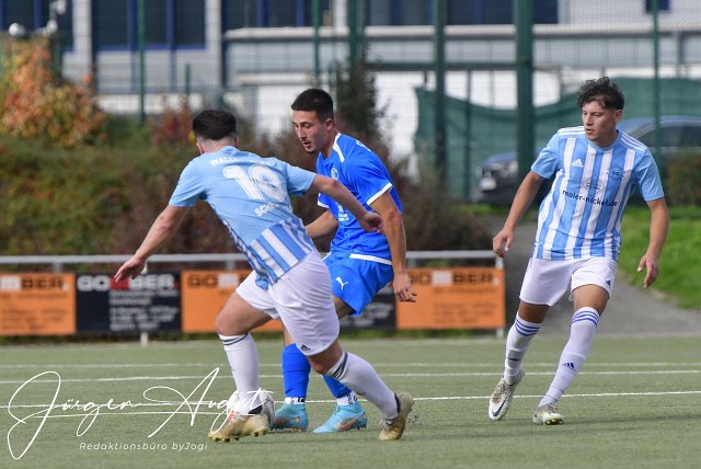Fussball, Bezirksliga Ost, Spvgg. EGC Wirges (blau) vs SF Wallmanroth (blau-weiss), 16.10.2022 | ||