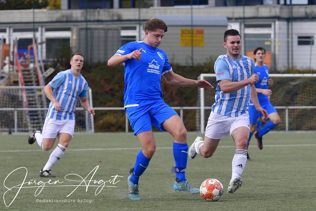 Fussball, Bezirksliga Ost, Spvgg. EGC Wirges (blau) vs SF Wallmanroth (blau-weiss), 16.10.2022 | ||