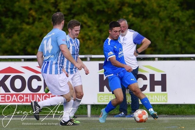 Fussball, Bezirksliga Ost, Spvgg. EGC Wirges (blau) vs SF Wallmanroth (blau-weiss), 16.10.2022 | ||