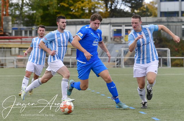 Fussball, Bezirksliga Ost, Spvgg. EGC Wirges (blau) vs SF Wallmanroth (blau-weiss), 16.10.2022 | ||