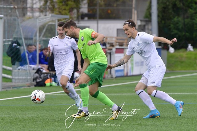 Fussball, Oberliga Rheinlad-Pfalz Saar, FV Engers 07 (grün) vs FC Blau Weiß Karbach (weiß), 22.10.22 | ||