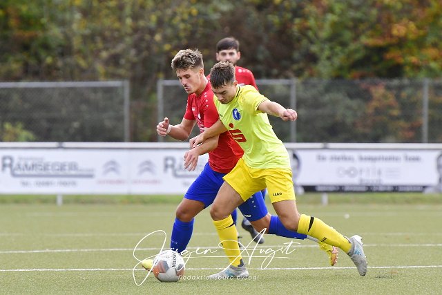 Fussball, Rheinlandliga, SG Altenkirchen-Neitersen (rot-blau) vs. FC Metternich (gelb), 23.10.2022 | ||