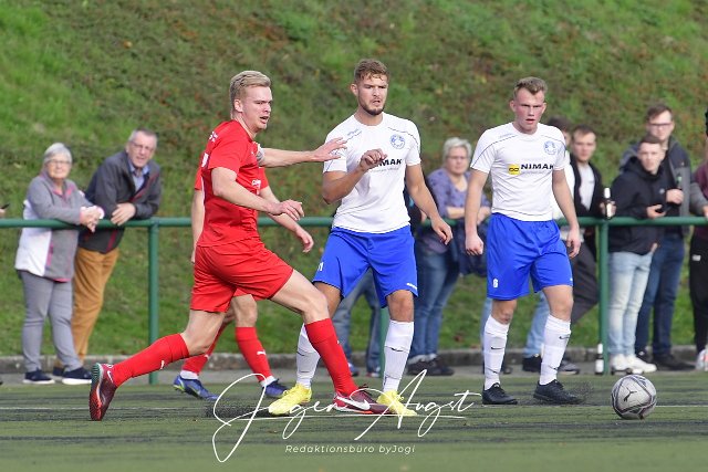 Fussball, Rheinlandliga, SG Malberg (rot) vs. VfB Wissen (weiss/blau), 29.10.2022 | ||