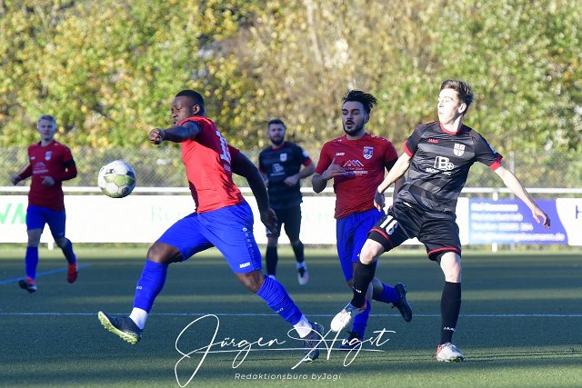 Fussball, Rheinlandliga, SG Altenkirchen-Neitersen (rot/blau) vs. SG 99 Andernach (schwarz), 13.11.2022 | ||