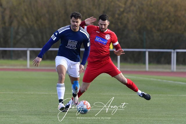 Fussball, Bezirksliga Fussball- BezirksligaOst, SG Berod-Wahlrod-Lautzert-Oberdreis (rot) vs. SG Westerburg-Gemuenden-Willmenrod (blau/weiss), 26.02.2023 | ||