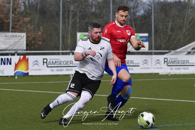 Fusball, Kreisliga B2, SG Altenkirchen-Neitersen II (rot/blau) vs. SG Mittelhof-Niederhoevels (weiss/schwarz), 19.03.2023 | ||