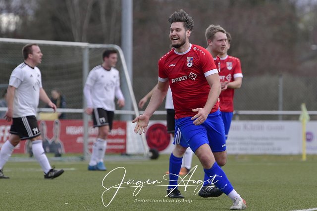 Fusball, Kreisliga B2, SG Altenkirchen-Neitersen II (rot/blau) vs. SG Mittelhof-Niederhoevels (weiss/schwarz), 19.03.2023 | ||