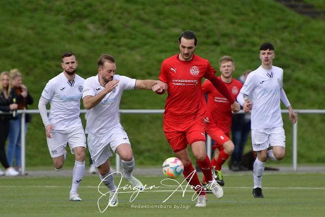 Fussball, Bezirksliga Ost, SG Weitefeld (rot) vs. VfB Linz (weiß), 08.04.2023 | ||
