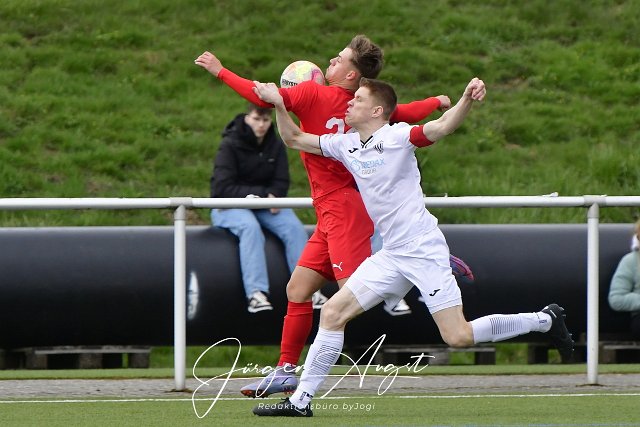 Fussball, Bezirksliga Ost, SG Weitefeld (rot) vs. VfB Linz (weiß), 08.04.2023 | ||