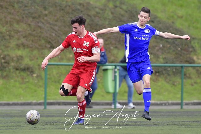 Fussball, Rheinlandliga, SG Malberg (rot) vs. TSV Emmelshusen (blau), 08.04.2023 | ||