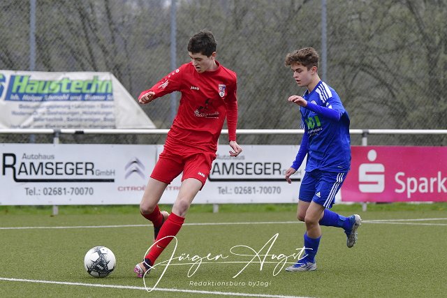 Fussball, Rheinlandliga, B-Junioren, JSG Neitersen (rot) vs. JFV Wolfstein (blau), 15.04.2023 | ||