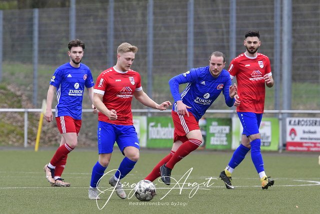 Fussball, Rheinlandliga, SG Altenkirchen-Neitersen (rot/blau) vs. FSV Trier-Tarforst (blau/rot), 16.04.2023 | ||