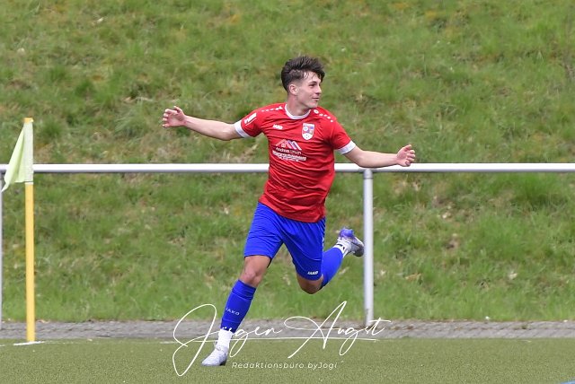 Fussball, Rheinlandliga, SG Altenkirchen-Neitersen (rot/blau) vs. FSV Trier-Tarforst (blau/rot), 16.04.2023 | ||