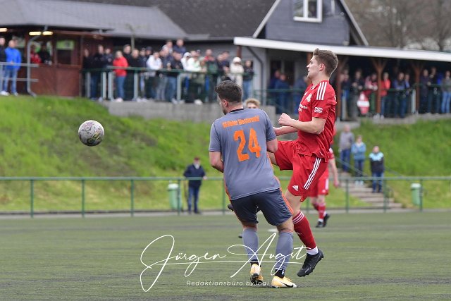 Fussball, Rheinlandliga, SG Malberg (rot) vs. SG HWW Niederrossbach (grau), 22.04.2023 | ||