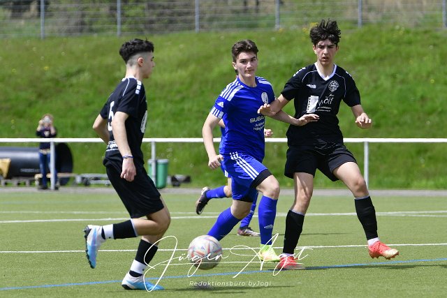 Fussball, Rheinlandliga C-Junioren, JFV Wolfstein Westerwald-Sieg (blau) vs. FC Rot-Weiss Koblenz (Schwarz), 06.05.2023 | ||