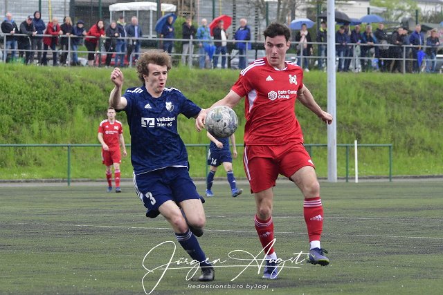 Fussball, Rheinlandliga, SG Malberg (rot) vs. FC Hochwald-Zerf (blau), 06.05.2023 | ||