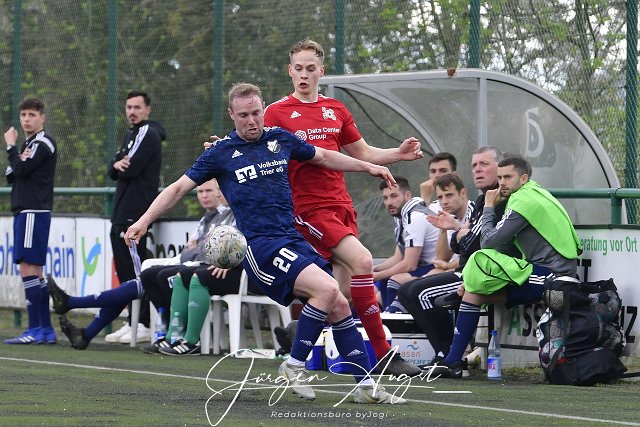 Fussball, Rheinlandliga, SG Malberg (rot) vs. FC Hochwald-Zerf (blau), 06.05.2023 | ||