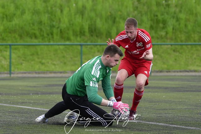Fussball, Rheinlandliga, SG Malberg (rot) vs. FC Hochwald-Zerf (blau), 06.05.2023 | ||