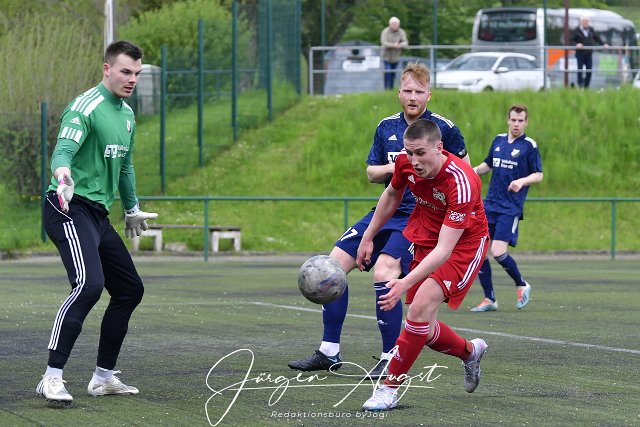 Fussball, Rheinlandliga, SG Malberg (rot) vs. FC Hochwald-Zerf (blau), 06.05.2023 | ||