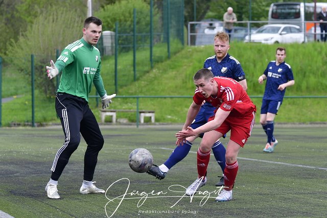 Fussball, Rheinlandliga, SG Malberg (rot) vs. FC Hochwald-Zerf (blau), 06.05.2023 | ||