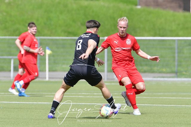 Fusball, Bezirksliga Ost, SG Weitefeld (rot) vs. FC Kosova Montabaur (schwarz), 14.05.2023 | ||