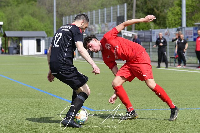 Fusball, Bezirksliga Ost, SG Weitefeld (rot) vs. FC Kosova Montabaur (schwarz), 14.05.2023 | ||