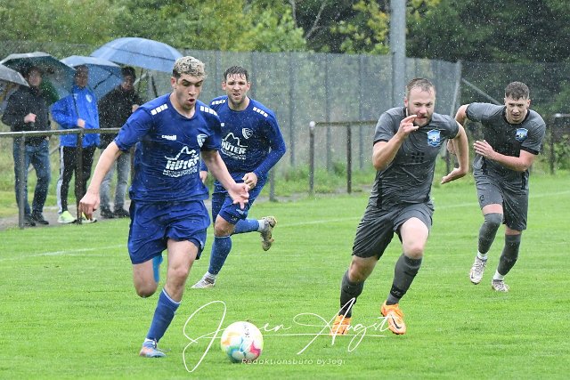 Fussball, Rheinlandpokal, Runde 1, SG Weitefeld Langenbach-Nauroth (grau) vs. Spvgg. EGC Wirges (blau), 06.08.2023 | ||