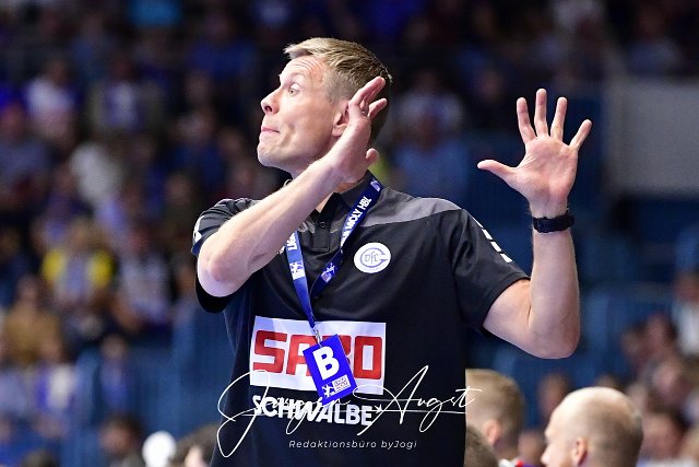 Gestenreich Gudjon Valur Sigurdsson (Trainer VfL Gummersbach) Handball, 1 Bundesliga, VfL Gummersbach vs. TBV Lemgo Lippe, 1. Spieltag, Schwalbe Arena Gummersbach, 27,08.2023 Foto: Eibner-Pressefoto/Juergen Augst | ||