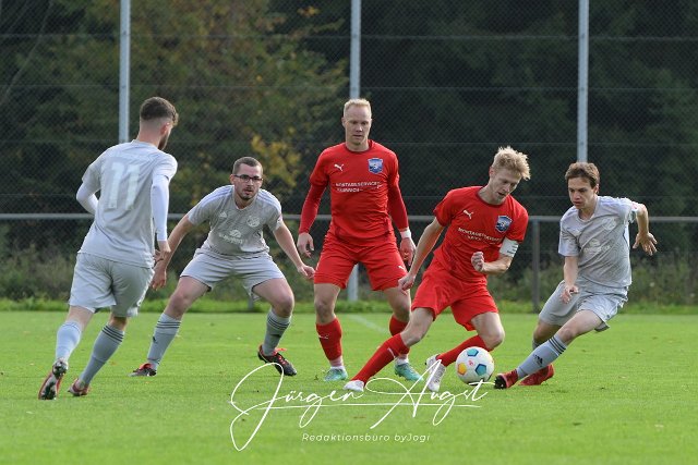Fussball, Bezirksliga Ost, SG Weitefeld (rot) vs. TuS Burgschwakbach (grau), 15.10.2023 | ||