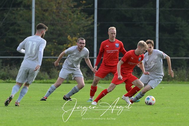 Fussball, Bezirksliga Ost, SG Weitefeld (rot) vs. TuS Burgschwakbach (grau), 15.10.2023 | ||