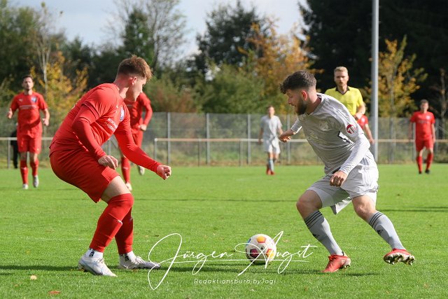 Fussball, Bezirksliga Ost, SG Weitefeld (rot) vs. TuS Burgschwakbach (grau), 15.10.2023 | ||