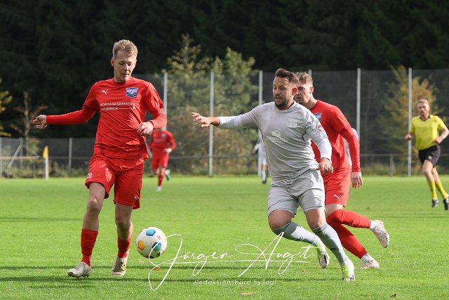 Fussball, Bezirksliga Ost, SG Weitefeld (rot) vs. TuS Burgschwakbach (grau), 15.10.2023 | ||