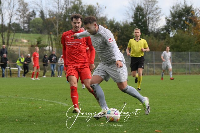Fussball, Bezirksliga Ost, SG Weitefeld (rot) vs. TuS Burgschwakbach (grau), 15.10.2023 | ||