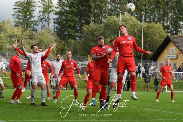 Fussball, Bezirksliga Ost, SG Weitefeld (rot) vs. TuS Burgschwakbach (grau), 15.10.2023 | ||