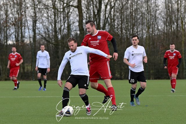 Fussball, Kreisliga B2,SG Weitefeld Langenbach-Nauroth II (rot) vs. SG Gebhardshainer Land-Steineroth-Dauersberg II (weiß/schwarz), 25.02.2024 | ||