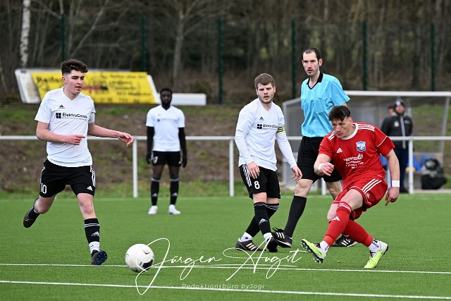 Fussball, Kreisliga B2,SG Weitefeld Langenbach-Nauroth II (rot) vs. SG Gebhardshainer Land-Steineroth-Dauersberg II (weiß/schwarz), 25.02.2024 | ||