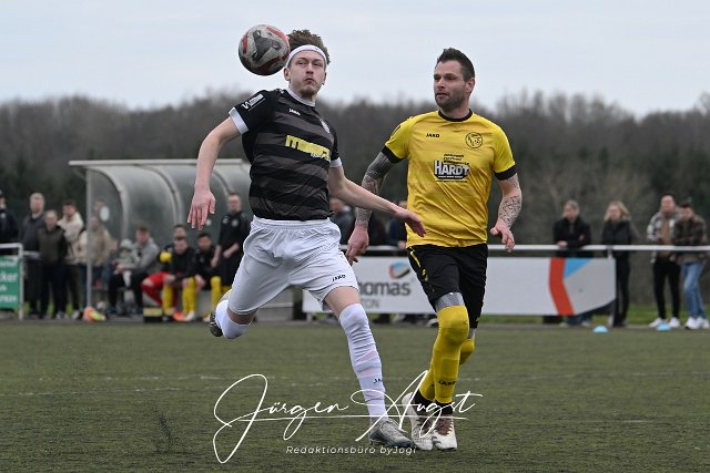 Fussball, Kreisliga B2, SSV Weyerbusch (schwarz/weiß) vs. VfL Oberlahr-Flammersfeld (gelb/schwarz), 17.03.2024 | ||