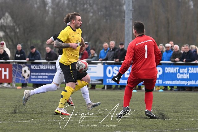 Fussball, Kreisliga B2, SSV Weyerbusch (schwarz/weiß) vs. VfL Oberlahr-Flammersfeld (gelb/schwarz), 17.03.2024 | ||