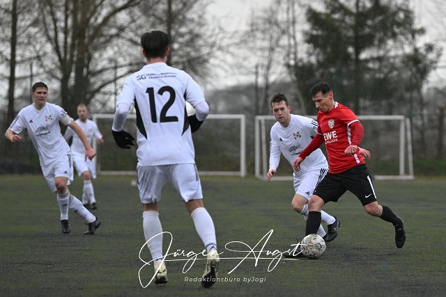 Fussball, Rheinlandliga, SG Malberg (weiß) vs. FSG Ehrang (rot/schwarz), 23.03.2024 | ||