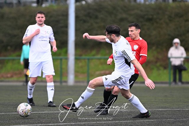 Fussball, Rheinlandliga, SG Malberg (weiß) vs. FSG Ehrang (rot/schwarz), 23.03.2024 | ||
