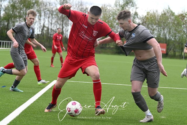 Fussball, Bezirksliga Ost, SG Weitefeld (grau) vs. FC Kosava Montabaur (rot), 28.04.2024 | ||