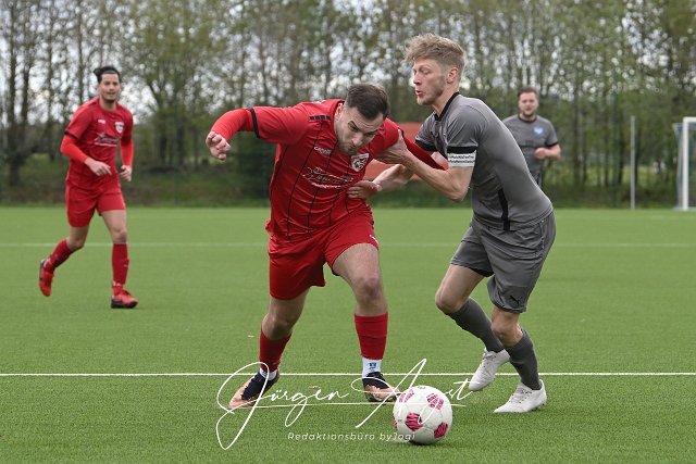 Fussball, Bezirksliga Ost, SG Weitefeld (grau) vs. FC Kosava Montabaur (rot), 28.04.2024 | ||