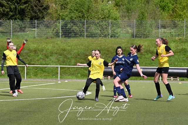 Fussball, Kreisliga, C-Juniorinnen, TuS Weitefeld (dunkelba) vs. MSG Arzheim (gelb/schwarz), 05.05.2024 | ||