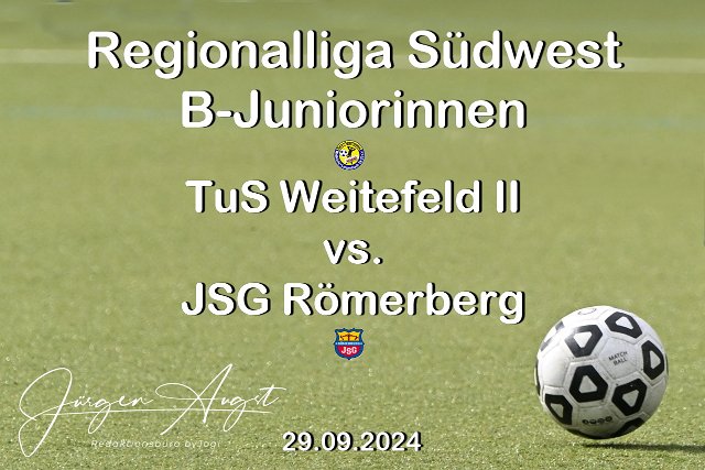 Fussball, Regionalliga B-Junniorinnen, TuS Weitefeld (blau) vs. JSG Roemerberg ((weiß-rot), 29.09.2024 | ||
