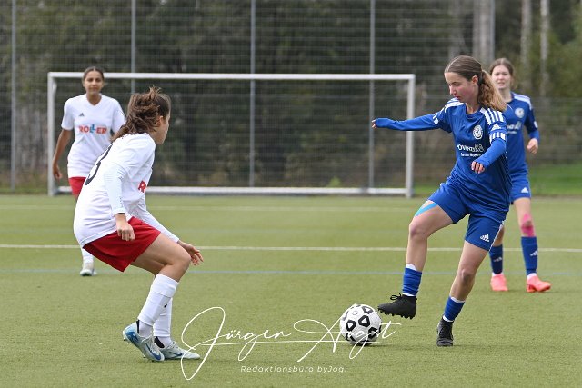 Fussball, Regionalliga B-Junniorinnen, TuS Weitefeld (blau) vs. JSG Roemerberg ((weiß-rot), 29.09.2024 | ||