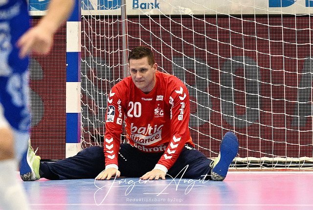 Kevin Moller (SG Flensburg-Handewitt 20) sitzt in seinem Tor VfL Gummersbach vs. SG Flensburg Handewitt, Handball, Daikin 1. Bundesliga, 5. Spieltag, Spielzeit 2024-2025, Schwalbe Arena Gummersbach, 06.10.2024 Foto: Eibner-Pressefoto/Juergen Augst | ||
