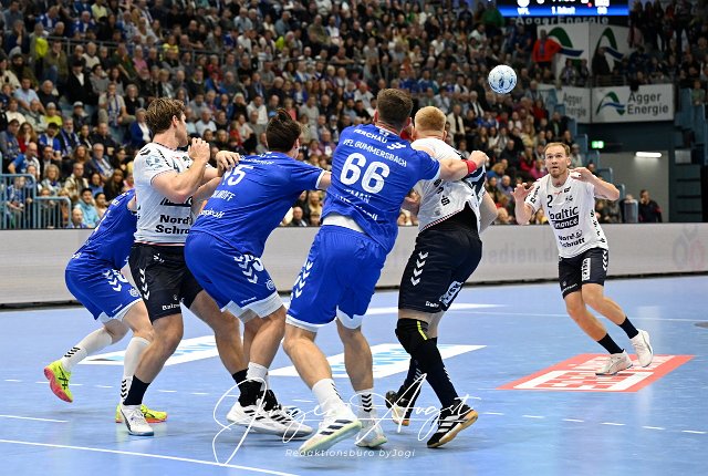 #2 Simon Pytlick (SG Flensburg-Handewitt 2) im Angriff aus dem Rueckraum VfL Gummersbach vs. SG Flensburg Handewitt, Handball, Daikin 1. Bundesliga, 5. Spieltag, Spielzeit 2024-2025, Schwalbe Arena Gummersbach, 06.10.2024 Foto: Eibner-Pressefoto/Juergen Augst | ||