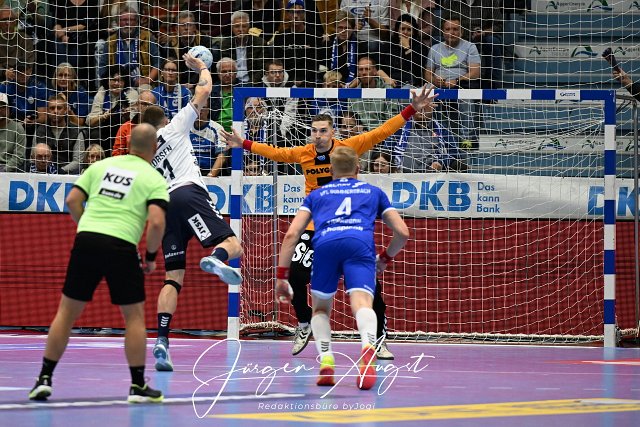 7-Meter Duell Emil Jakobsen (SG Flensburg-Handewitt 31) gegen Dominik Kuzmanovic (VfL Gummersbach 1) VfL Gummersbach vs. SG Flensburg Handewitt, Handball, Daikin 1. Bundesliga, 5. Spieltag, Spielzeit 2024-2025, Schwalbe Arena Gummersbach, 06.10.2024 Foto: Eibner-Pressefoto/Juergen Augst | ||