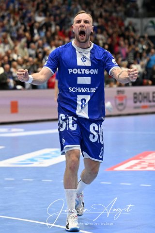 Lukas Blohme (VfL Gummersbach 8) jubelt VfL Gummersbach vs. SG Flensburg Handewitt, Handball, Daikin 1. Bundesliga, 5. Spieltag, Spielzeit 2024-2025, Schwalbe Arena Gummersbach, 06.10.2024 Foto: Eibner-Pressefoto/Juergen Augst | ||