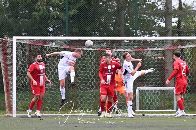 Fussball, Rheinlandliga, SG Malberg (weiss) vs. Ahrweiler BC (rot),12.10.2024 | ||